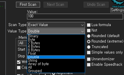치트엔진 스텝4에서는 스텝 2와 같은 원리이지만 찾을 값의 자료형이 Float과 Double 로 되어있다는 점만이 다릅니다.
