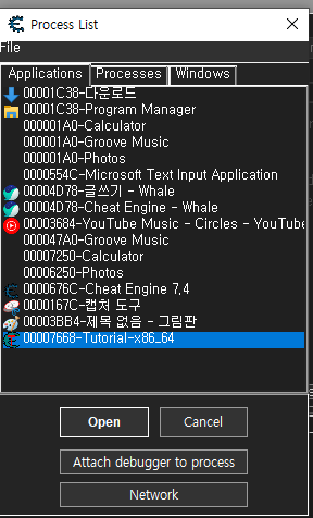 우선, 아래와 같은 사진의 프로그램이 실행되었다면 Process Attach를 해보도록 하겠습니다.