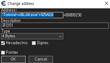우선, 찾은 포인터의 Address 부분을 더블클릭 해줍니다.